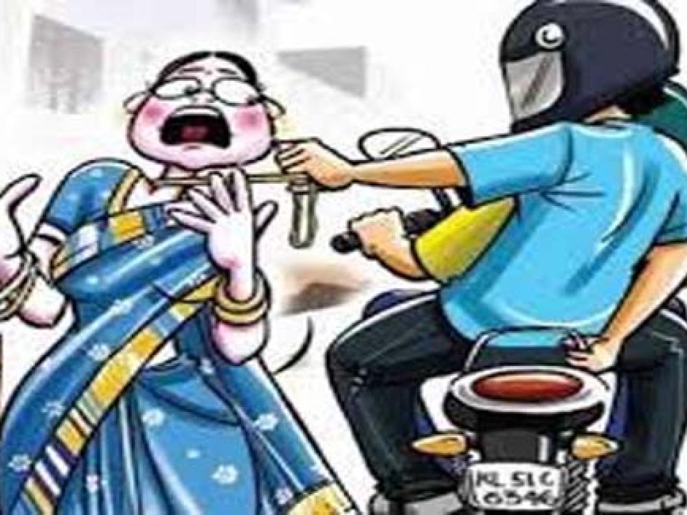 बीड (Beed)शहरातील सुनंदा अरुण जगताप (वय ५४) रा.शाहूनगर बीड ह्या नातवंडांसोबत माने कॉम्पलेस परिसरातील उद्यानाकडे पायी जात असताना समोरून दुचाकीवर आलेल्या अज्ञात दोघांनी गळ्यातील १३ ग्रॅमचे मिनिगंठन हिसकावून घेऊन (Crime)गेल्याची घटना शुक्रवार (दि.१७)रोजी सायंकाळी ५ च्या सुमारास घडली असून एकूण ७५,००० रुपयांचा ऐवज लंपास केल्याप्रकरणी शिवाजीनगर पोलीस ठाण्यात अज्ञात दोघांविरोधात गुन्हा दाखल करण्यात आला आहे.