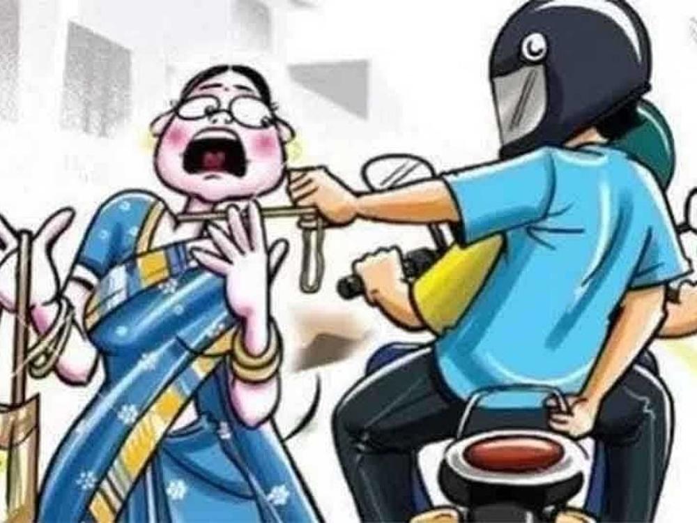 यशवंत चौक ते बायपास रोड या दरम्यान असलेल्या डॉ. दीपक जोशी हॉस्पिटल यांच्यासमोर व्यावसायिक प्रकाश व नंदलाल मेहता यांचे घर आहे. या रस्त्यावर नगर परिषदेच्या खांबावरील पथदिवे बंद असल्याने बऱ्याच ठिकाणी अंधार असतो. बुधवारी दीपावली पाडवा असल्याने कुटुंबातील महिला रात्री साडेआठच्या सुमारास गणपती मंदिरात दर्शनाला गेल्या होत्या. तेथून त्या परत येताना शतायुषी हॉस्पिटलकडून एका दुचाकीवर रुमालाने तोंड बांधलेले दोन तरुण विरुद्ध दिशेने आले. या महिलांना पाहून पुढे जाऊन पुन्हा दुचाकी वळवून परत फिरले. त्यांनी या महिलांच्या घोळक्यामध्ये दुचाकी घातली. त्यामुळे या महिला सैरभैर होताच फायदा घेत चोरट्यांनी दुचाकी ७७ वर्षीय वृद्ध महिला ललिताबाई गौतम मेहता यांच्या अंगावर घातली. त्यामुळे त्या रस्त्यावर खाली पडल्या. त्यावेळी झटापट करून चोरट्यांनी त्यांच्या गळ्यातील बोरमाळ व मंगळसूत्र असे सात तोळ्यांचे दागिने हिसकावून लंपास केले.