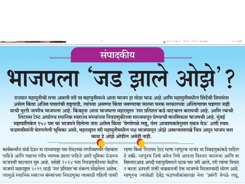 संपादकीय अग्रलेख - भाजपला 'जड झाले ओझे'?