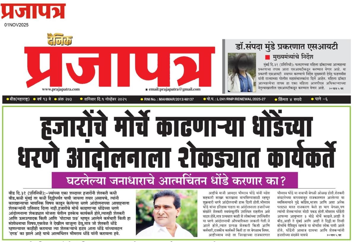 आष्टीचे माजी आमदार भीमराव धोंडे यांनी महेश सहकारी साखर कारखाना वाचविण्यासाठी म्हणून शुक्रवारी धरणे आंदोलनाची हाक दिली होती.भीमराव धोंडे यांचा इतिहास पाहता या आंदोलनाला हजारोंच्या संख्येने शेतकरी स्वयंस्फूर्तीने उपस्थित राहतील असे वाटत होते,मात्र प्रत्यक्षात काही शे लोकांच्या उपस्थितीत या धरणे आंदोलनाची औपचारिकता उरकली गेली.जे आले होते,त्यात प्रत्यक्ष शेतकरी किती आणि कर्मचारी,राजकीय कार्यकर्ते किती हा तर वेगळाच विषय.आष्टीच्याच नव्हे तर जिल्ह्याच्या राजकारणात भीमराव धोंडे या नावाची वेगळी ओळख होती.शेतकरी संघटनेच्या माध्यमातून राजकारणात आलेल्या या व्यक्तिमत्वाने पुढे काँग्रेस,भाजप आणि अशा अनेक पलट्या मारत राजकारण केले हा भाग वेगळा,पण त्यांची शेतकऱ्यांवर मोठी पकड होती.भीमराव धोंडेंनी आपल्या आयुष्यात ३ मोठे मोर्चे काढले.आष्टी ते बीड,आष्टी ते मुंबई आणि आष्टी ते दिल्ली.या तिन्ही मोर्चाचे वैशिष्ट्य म्हणजे या मोर्चांना लोक पायी आले होते. धोंडेंनी आवाज द्यायचा आणि शेतकऱ्यांनी हजारोंच्या संख्येने यायचे असा जणू शिरस्ता पडलेला होता,पण भीमराव धोंडे यांना या जनाधाराचे सोने करता आले नाही.त्यांना शेतकऱ्यांनी अनेकदा विधानसभेत पाठविले पण त्यांच्या डोळ्यादेखत या मतदारसंघातील शेतकऱ्यांच्या आयुष्याचे मातेरे होताना धोंडे 'दगडी' मानसिकतेतून पाहत राहिले हा कटू असला तरी वास्तव इतिहास आहे.आष्टीच्या शेतकऱ्यांची कामधेनू म्हणून आज ज्या महेश,(पूर्वीच्या कडा,भीमराव धोंडे यांना स्वतःपासून ते कारखान्यापर्यंत सर्वांचीच नावे बदलण्याचा भारी हौस असावा) कारखान्यासाठी भीमराव धोंडे शेतकऱ्यांना जमवत आहेत,त्या कारखान्याने शेतकऱ्यांच्या आयुष्यात असे काय दिवे लावले? कितीतरी शेतकऱ्यांना कारखान्याकडे उसाचे पैसे सोडून द्यावे लागले.कामगार, कर्मचाऱ्यांना न्यायालयाचे खेटे घालून,आरआरसीच्या कारवाया मंजूर करून घेऊन देखील अद्याप आपले पगार मिळालेले नाहीत आणि या असल्या 'कर्तृत्वाचे' गोडवे गात आज भीमराव धोंडे कारखाना वाचविण्यासाठी म्हणून शेतकऱ्यांना बोलवत असतील तर शेतकरी त्यासाठी कसे येणार? म्हणूनच शुक्रवारी धोंडे यांनी अगदीच थोडक्या कार्यकर्त्यांमध्ये धरणे आंदोलन उरकून घेतले.मात्र एकेकाळी शेतकऱ्यांचा नेते असलेले धोंडे आता त्याच शेतकऱ्यांना आपल्या गळ्यातील 'धोंड' तर वाटत नाहीत ना? याचाही विचार भीमराव धोंडेना आज ना उद्या करावा लागणार आहे.