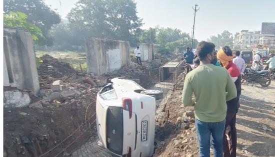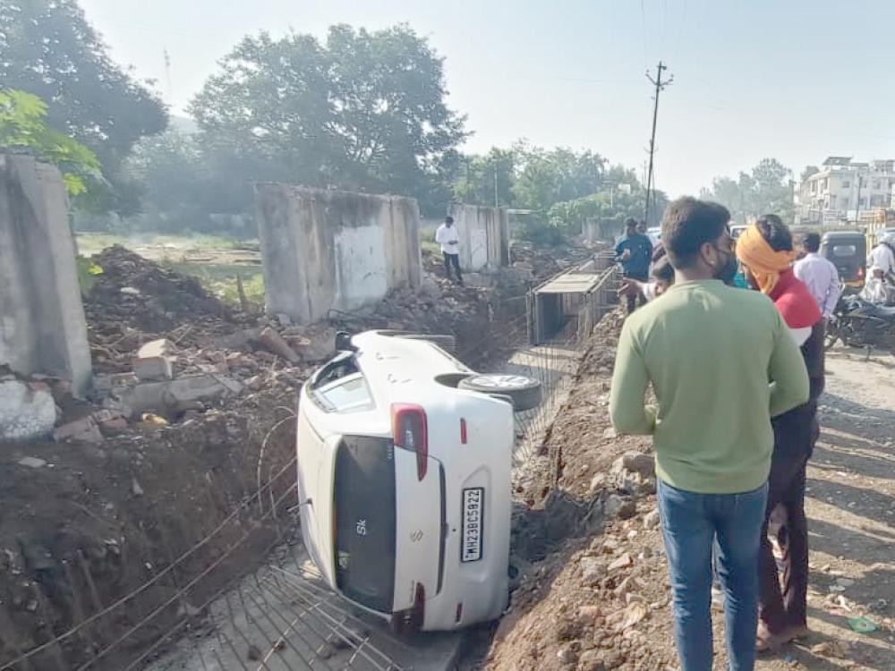 बीड (Beed) शहरातून जाणाऱ्या नांदेड ते आहिल्यानगर या राष्ट्रीय महामार्गाचे व नालीचे काम गेल्या दोन वर्ष्यापासून धिम्या गतीने सुरु आहे.(Barshi)बार्शी रोडकडे जात असलेल्या कारचा (एमएच.२३बीसी.५८२२) आज (Accident) सोमवार (दि.१०) रोजी सकाळी ०८:३० च्या सुमारास पोलीस अधीक्षक कार्यालयाच्या दारातच अपघात झाला.या कारमध्ये एक दांपत्य होते त्यांना किरकोळ मार लागला असून पुढील उपचारासाठी जिल्हा रुग्णालयात दाखल केले आहे.