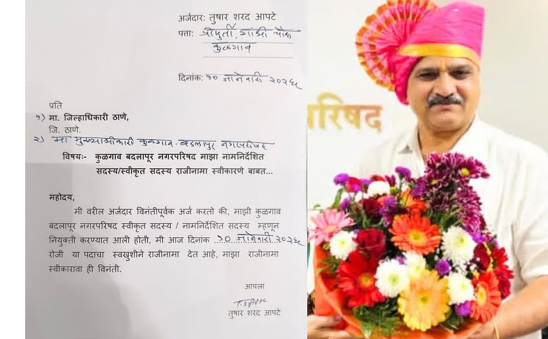 विशेष म्हणजे, कालच कुळगाव बदलापूर नगरपरिषदेच्या कार्यकारणी बैठकीत आपटे यांना स्वीकृत नगरसेवक पदावर नियुक्त करण्यात आले होते. त्यानंतर, समाजातून तीव्र प्रतिक्रिया येत होत्या, तर भाजपने तुषार आपटे याच्या स्वीकृत नगरसेवकपदाचा तातडीने राजीनामा घेतला नाही तर येत्या 13 किंवा 14 जानेवारीला मनसे (MNS) बदलापूरमध्ये मोर्चा काढेल आणि आंदोलन करेल, असा इशारा अविनाश जाधव यांनी दिला होता. वाढता विरोध लक्षात घेत तुषार आपटेंनी आपला राजीनामा दिला आहे.
