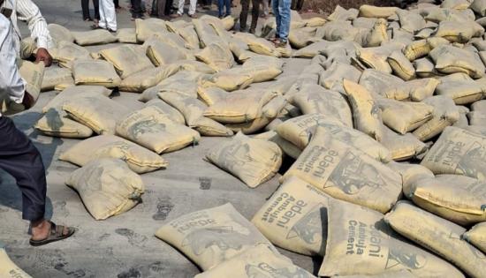 धारुर दि.२०(प्रतिनिधी): येथील घाटामध्ये धोक्याच्या वळणाधर सिमेंट घेऊन जाणारा ट्रक पलटी झाला असून, सिमेंटचे पोते रस्त्यावर पसरल्याने रस्ता बंद पडून दोन्ही बाजूंनी वाहनांच्या रांगा लागल्या आहेत. यामुळे प्रवाशांची मोठी गैरसोय झाली होती. सकाळी १० सुमारास अपघात घडून ही दुपारी १२ पर्यंत हा रस्ता सुरू झालेला नव्हता यामुळे प्रवाशांमधून संताप व्यक्त केला जात आहे.