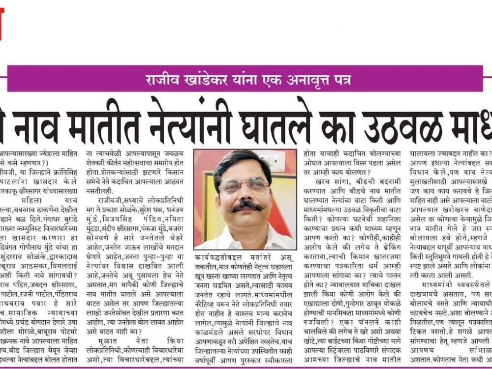 जिल्ह्याचे नाव मातीत नेत्यांनी घातले का उठवळ माध्यमांनी?;राजीव खांडेकर यांना एक अनावृत्त पत्र