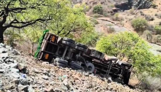धारूर घाटात दरीत कोसळला ट्रक
