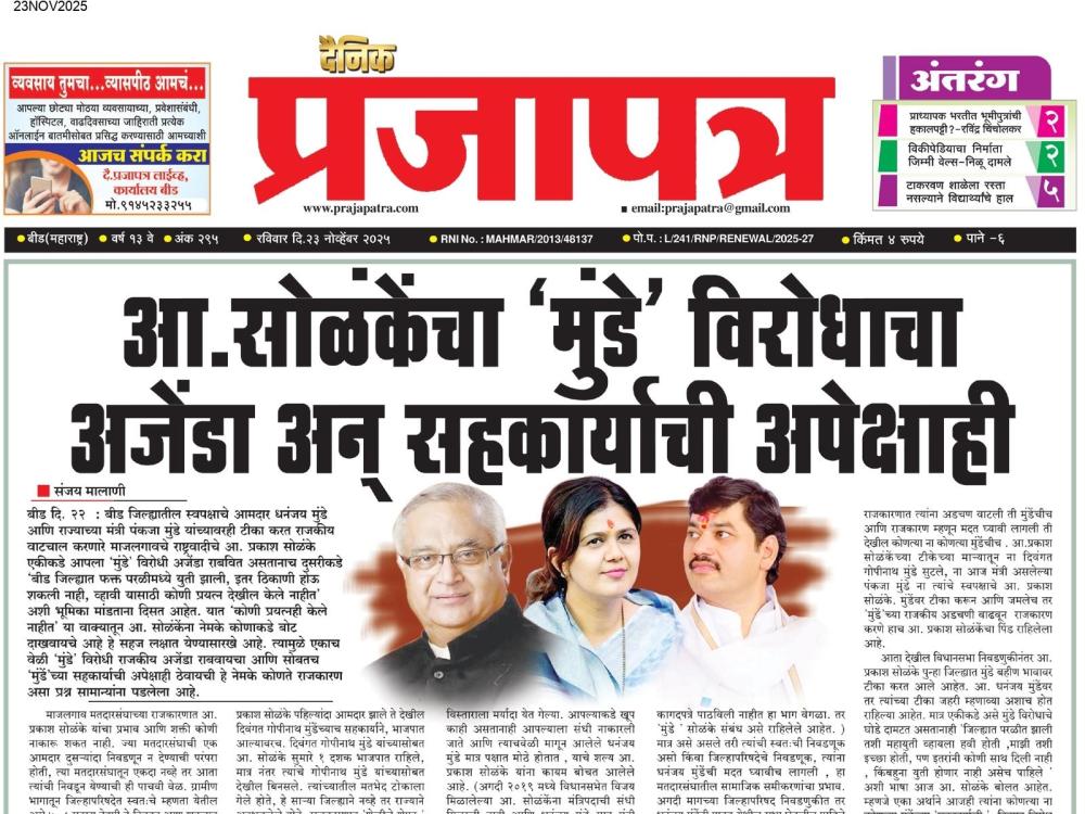 प्रजापत्र | Sunday, 23/11/2025