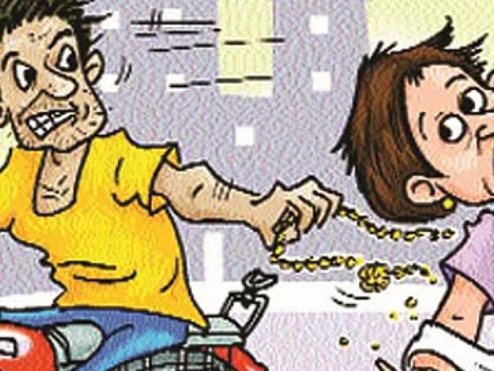 बीड (Beed)जिल्ह्यात दिवसेंदिवस चोरीच्या घटनेत वाढ होताना दिसत असून ज्योती समिर शिंदे (शेलार) वय ३८ रा.श्रद्धा निवास,इंडिया बँक कॉलनी,जालना रोड बीड ह्या त्यांच्या घराकडे शहरातील शांताई हॉटेलच्या बाजूच्या रस्त्याने पायी जात असताना घोडके हॉस्पिटल समोर अज्ञात दोघांनी दुचाकीवर येत त्यांच्या गळ्यातील मिनीगंठण अंदाजे किंमत ६५,००० हजारांचा ऐवज लंपास केल्याची घटना बुधवार (दि.७) रोजी सायंकाळी ४:४० च्या सुमारास भरदिवसा घडली असून अज्ञात दोन आरोपींविरुद्ध शिवाजीनगर पोलीस ठाण्यात ज्योती शिंदे यांच्या (Crime)फिर्यादीवरून गुन्हा दाखल केला आहे. पुढील तपास पोलीस करत आहेत.