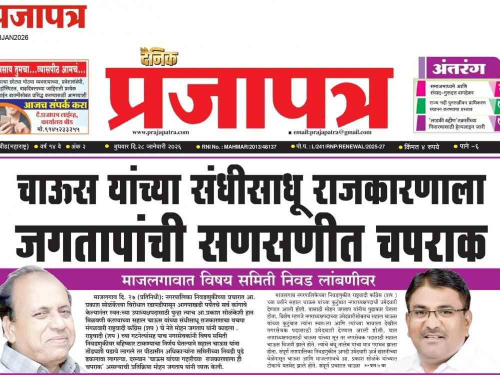 माजलगाव दि. २७ (प्रतिनिधी ) ; नगरपालिका निवडणुकीच्या प्रचारात आ. प्रकाश सोळंकेंच्या विरोधात रडापडीपासून आगपाखडी पर्यंतचे सर्व कांगावे केल्यानंतर स्वतःच्या उपाध्यक्षपदासाठी पुन्हा त्याच आ. प्रत्यक्ष सोळंकेशी हात मिळवणी करण्याच्या सहाल चाऊस यांच्या संधीसाधू राजकारणाचा वचपा मंगळवारी राष्ट्रवादी काँग्रेस (शप ) चे नेते मोहन जगताप यांनी काढला . राष्ट्रवादी (शप ) च्या गटनेत्यांसह पाच नगरसेवकांनी विषय समिती निवडणुकीवर बहिष्कार टाकण्याचा निर्णय घेतल्याने सहाल चाऊस यांना तोंडघशी पडावे लागले तर पीठासीन अधिकाऱ्यांना समितीच्या निवडी पुढे ढकलावा लागल्या. दरम्यान 'चाऊस यांच्या गद्दारीच्या  राजकारणाला ही चपराक' असल्याची प्रतिक्रिया मोहन जगताप यांनी व्यक्त केली.