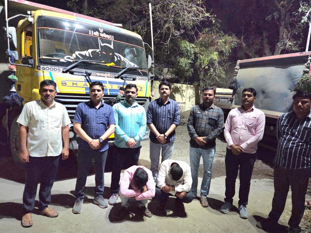 बीड जिल्ह्यात मागील काही दिवसांपासून पोलिसांचा अवैध वाळू वाहतुकीवर कारवाईचा सपाटा सुरु असून गेवराई तालुक्यातील बोरगाव परिसरात शुक्रवार (दि ६) रात्री ८ च्या सुमारास स्थानिक गुन्हे शाखेच्या टिमने पाठलाग करून दोन वाळूने भरलेल्या हायवावर कारवाई करत एकूण ५० लाख ६० हजाराचा मुद्देमाल जप्त केला असून सर्फराज राजू पठाण (वय २९) रा.महारटाकळी ता.गेवराई जी.बीड व अशोक दत्तात्रय रकटे (वय ३६) रा.मुंगी ता.शेवगाव जी.आहिल्यानगर या दोघांवर चकलांबा पोलिस ठाण्यात गुन्हा दाखल करण्यात आला आहे. सदरील कारवाई पोलिस अधीक्षक नवनित कॉवत, अप्पर पोलिस अधीक्षक सचिन पांडकर, स्थानिक गुन्हे शाखेचे पोनि शिवाजी बंटेवाड, यांच्या मार्गदर्शनाखाली पोउपनि खटावकर,श्री.यादव, बबन सलगर, विकास राठोड, अंकुश वरपे यांनी केली असून पुढील तपास सुरु आहे.