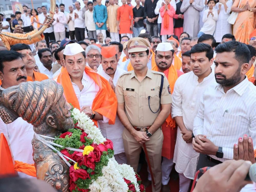 यावेळी जिल्हा परिषदेचे मुख्य कार्यकारी अधिकारी जितीन रहेमान, पोलीस अधिक्षक नवनीत काँवत, शल्यचिकित्सक डॉ. सतिशकुमार सोळंके, न.प. चे मुख्याधिकारी शैलेश फडसे, तहसीलदार चंद्रकांत शेळके,आ.संदीप क्षीरसागर यांची उपस्थिती होती. त्यानंतर आ.विजयसिंह पंडित, नगराध्यक्षा प्रेमलता पारवे, उपनगराध्यक्ष विनोद मुळूक, सभापती शेख निजाम, गटनेते फारूक पटेल, कल्याण आखाडे, दिलीप गोरे, भिमराव वाघचौरे, सीए बी.बी. जाधव, झुंजार धांडे, संदीप आदमाने, मनोज गोडसे, अमर नाईकवाडे यांनीही छत्रपती शिवाजी महाराज यांना अभिवादन केले. डॉ.योगेश क्षीरसागर, दत्ता गायकवाड, नागेश तांबारे, गणेश जाधव यांच्यासह शिवप्रेमी, सर्व सामान्य नागरीक यांनीही छत्रपती शिवाजी महाराजांना अभिवादन केले. जय भवानी जय शिवाजी, जय शिवराय अशा घोषणांनी बीड शहर दणाणून गेले होते.
