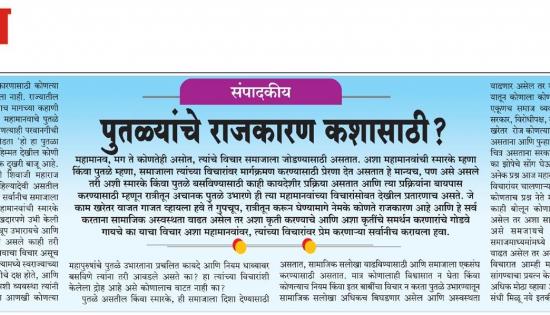पुतळे असतील किंवा स्मारके, ही समाजाला दिशा देण्यासाठी असतात, सामाजिक सलोखा वाढविण्यासाठी आणि समाजाला एकसंघ करण्यासाठी असतात. मात्र कोणालाही विश्वासात न घेता किंवा कोणत्याच नियम किंवा इतर बाबींचा विचार न करता पुतळे उभारण्यातून सामाजिक सलोखा अधिकच बिघडणार असेल आणि अस्वस्थता वाढणार असेल तर यातून आपल्याला नेमके काय साधायचे आहे? यातून कोणाला कोणते राजकारण करायचे आहे का? आणि याचा एकूणच समाज व्यवस्थेवर कसा परिणाम होणार आहे, याबद्दल सरकार, विरोधीपक्ष, लोकप्रतिनिधी सारेच मूग गिळून गप्प का आहेत? खरेतर रोज कोणत्यातरी गावात रात्रीतून एखादा पुतळा उभारला जात असताना आणि पुन्हा त्यातून कायदा सुव्यवस्थेचा प्रश्न निर्माण होण्याचे चित्र असताना सरकार आणि प्रशासन नावाची यंत्रणा झोपली आहे का झोपेचे सोंग घेऊन याकडे सोयीस्कर दुर्लक्ष करत आहे? असे अनेक प्रश्न आज महाराष्ट्रातील कोणत्याही सुसंकृत आणि महामानवांच्या विचारांवर चालणार्या सजग नागरिकाला पडत आहेत, मात्र यातील कोणताच प्रश्न नेते म्हणविणारांना पडत नाही, किंवा त्यांना यावर काही बोलून कोणालाच दुखवायचे नाही अशी त्यांची भूमिका असेल तर अशा सार्या प्रकारांना या व्यवस्थेचे मुकसमर्थन आहे असे समजायचे का? मागच्या दोन दिवसात किमान समाजमाध्यमांमध्ये काही लोकांनी तरी ‘सामाजिक अस्वस्थता वाढत असेल तर असे पुतळे आवश्यक आहेत का?’ असा सवाल विचारात आम्ही महामानवाचे वैचारिक वारसदार आहोत असे सांगण्याचा प्रयत्न केला आहे, अशा वैचारिक वारासदारांचा आवाज अधिक मोठा व्हावा आणि कोणालाच पुतळ्याचे राजकारण करण्याची संधी मिळू नये इतकीच अपेक्षा महाराष्ट्र ठेवून आहे.