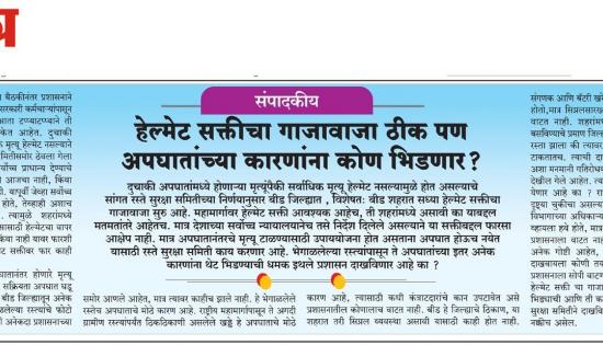 दुचाकी अपघातांमध्ये होणाऱ्या मृत्यूंपैकी सर्वाधिक मृत्यू हेल